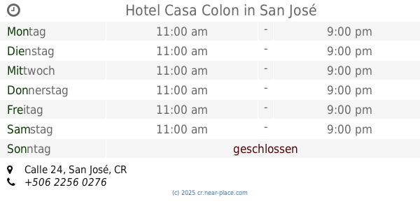 | Montag | 24 stunden geöffnet | |||||